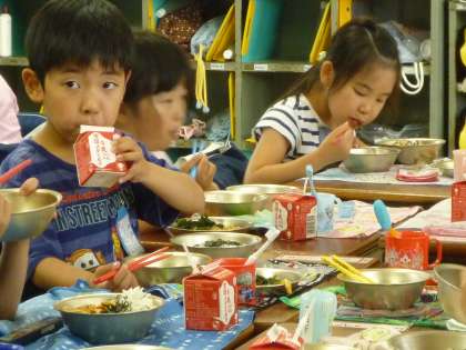 歯磨きができると,○をつけます。給食も大好き,食べた後は歯磨きです。