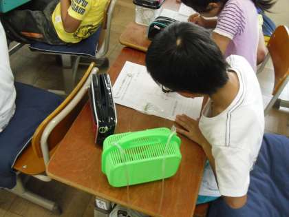 自分たちでとってきたトンボやバッタなどについて,詳しく調べました。