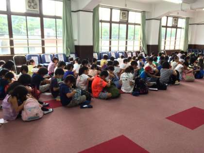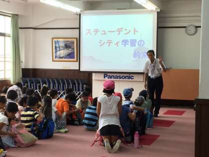 京都まなびの街生き方探求館での活動を開始しました。写真は、ぴりっとした雰囲気の中オリエンテーションを受けている様子です。