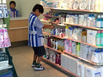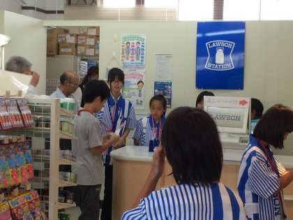 お客様が気持ちよくお買い物ができるように、商品の並びを整えたり、笑顔で接客をしています。写真はLAWSONでの様子です。