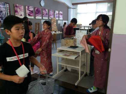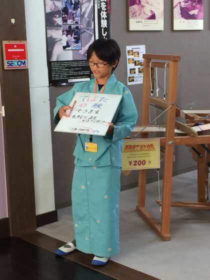 真剣な中にも,笑顔が見られました。写真は西陣織会館の様子です。