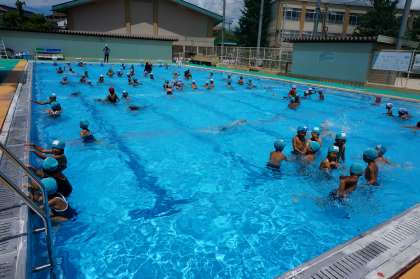 朝は曇っていましたが,低学年が泳ぐ頃には真夏の太陽が戻ってきました。