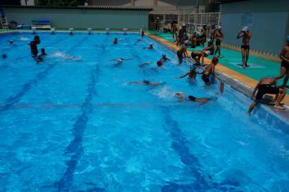 今シーズン最後の学校のプールにふさわしい良い天気になりました。