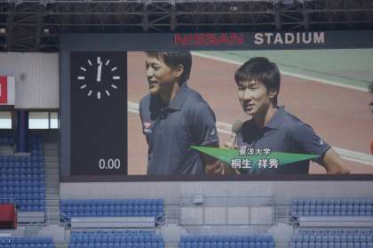 大会の表彰式には,プレゼンテーターとして,短距離の「山縣 亮太」選手,長距離の「佐藤 悠基」選手,そして洛南高校出身の「桐生 祥秀」選手が,小学生アスリートの応援に来てくれていました。