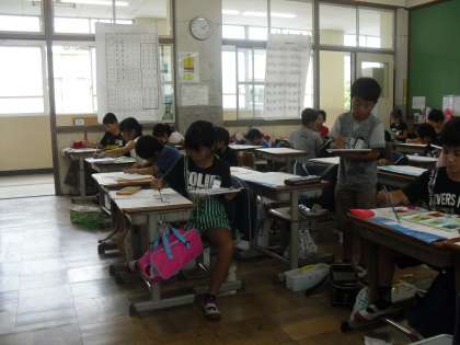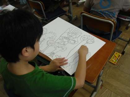 図画工作の学習で,「お話の絵」の学習が始まっています。今日は,下書きに追加したり画用紙に描いたりする活動をしました。それぞれのクラスで,本の中の世界を想像しながら描いていました。完成が楽しみですね。
