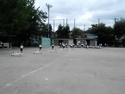 「何番の何コース」を確認した後,障害物競走の練習をしました。