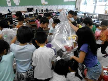 それぞれの教室で集まったガラクタからものは,ビニール袋いっぱいのものが何袋もありました。