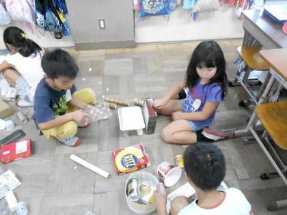 夏休みの間にお家で集めて持って来てもらった「ガラクタ」たち。