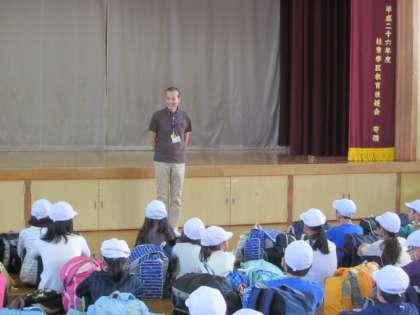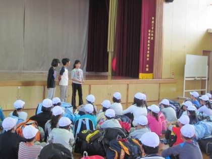 さわやかな風が吹く秋晴れの朝となりました。体育館で行われた出発式からは5年生の子どもたちのやる気を感じることができました。