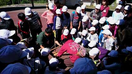 さぁ、いよいよ自分達で火起こしする番です。うまく火がつくでしょうか?