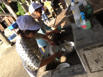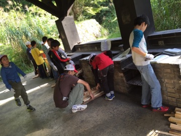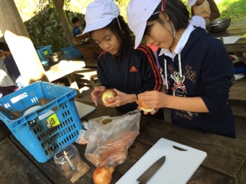 野外炊事が始まりました。