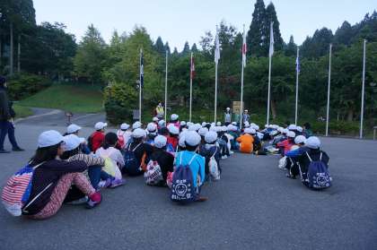 3校合同朝の集いの前に桂東だけの朝の集いをしました。寝ぼけ眼はありますが子どもたちは元気です。