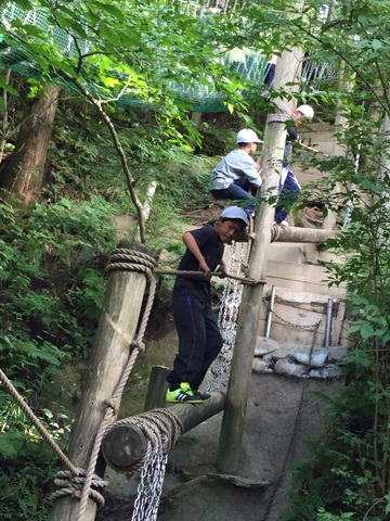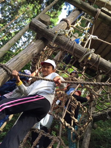 写真から子どもたちの楽しそうな声が聞こえてきそうですね。ひんやりとした空気に包まれ,山の木々や草のいいにおいがする中,全力で遊ぶ子どもたちです。