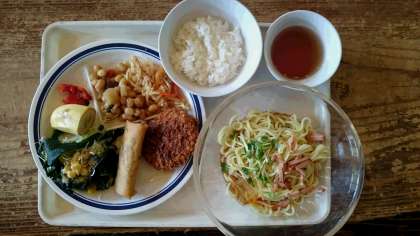 冷やし中華かカレーライスを選び、おかずはバイキングです。