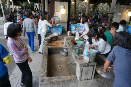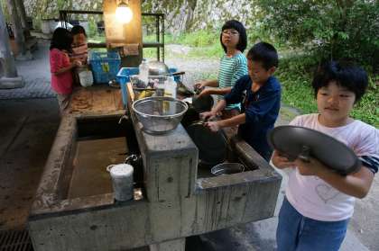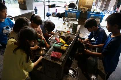 片づけも協力して頑張ります。今日は鍋も食器も多いので、なおさら協力が大切ですね。