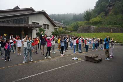 体操をして、予定の確認や係からの連絡がありました。