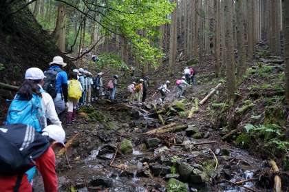 昨夜の雨で沢の水が少し多いのと、道がぬかるんでいるところがありました。