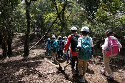 途中眼下に山の家の宿泊棟が見えました。