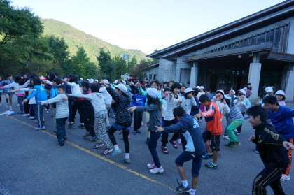 はじめは何が起こったかわからないといった子どもたちでしたが、次々と踊りだし、朝から大盛り上がり、大きな声も山の家に響き渡りました。