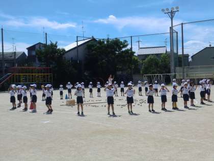 運動会に向けて,今日は外で初めてたまいれの練習をしました。
