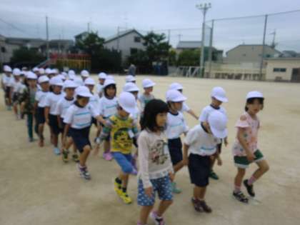最後には,行進の練習もしました。背筋をのばして,かっこよく。手もしっかりふって,音楽に合わせて列をそろえて歩く。本番は,1年生が先頭で入場します。演技や競争以外でも,見せ場です。