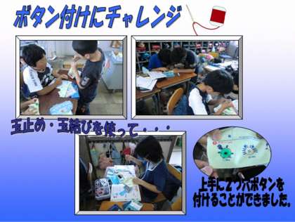 前回に引き続き,今回の家庭科はボタン付けにチャレンジしました。