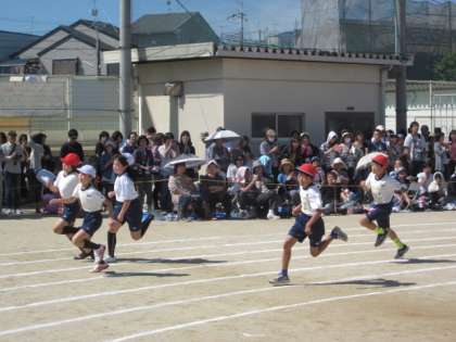 みんなで力を合わせた「綱引き」のあとは,5年生の徒競走です。さすがに高学年らしい走りを見せてくれました。
