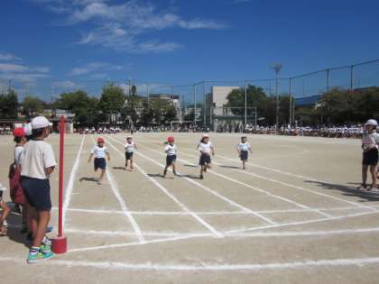 1年生最後の競技は50m走です。スタートからゴールまでの50mという距離を,1年生はどんな風に感じたでしょうか。案外遠く感じたのでは・・・?1年生,おつかれさま!