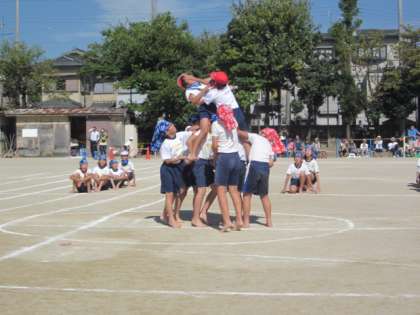 運動会の華のひとつの「騎馬戦」です。総力戦・一騎打ち・大将戦と迫力ある勝負が続きました。5年生全員,アドレナリン全開だったことでしょう。
