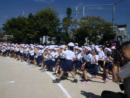 すっきりとしたぴかぴかの晴れの今日,運動会が行われました。