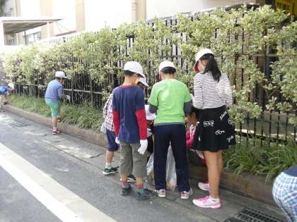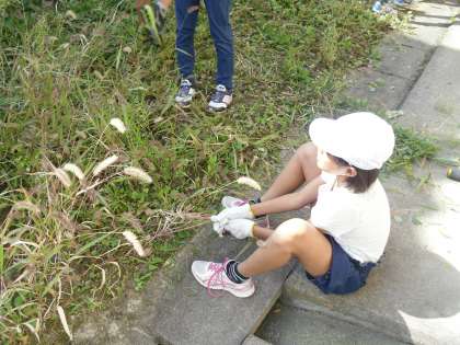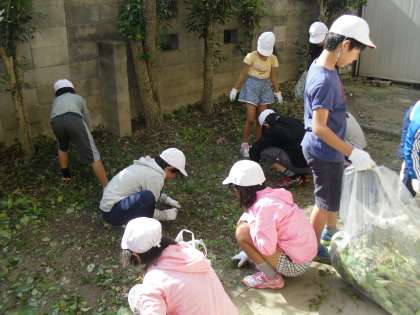 グリーンスクールで,5年生は校門の前と,体育館の裏を掃除しました。普段は自分たちでは掃除をしないところを,みんな一生懸命きれいにしました。