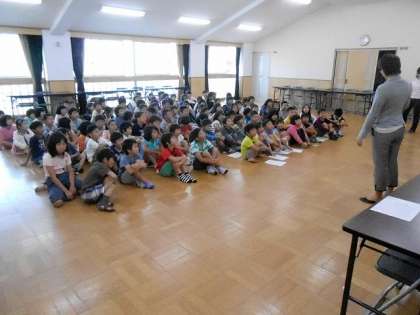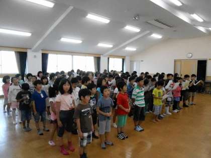 後期の始業式では,1〜6年生みんなで歌います。今から覚えておくための大事な練習です。