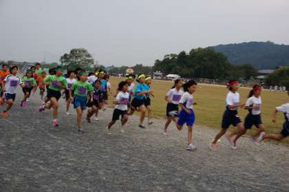 4年生にとっては,出場機会が少ない中での貴重な体験です。5年生にとっては,他校の5年生を知る機会にもなります。6年生にとっては来月にせまった「大文字駅伝」大会の支部予選への調整にもなる記録会です。