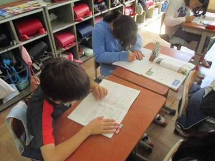 算数の時間では,飛行機と音の速さを比べました。時速と秒速の違いに気付き,みんなで問題を解決できました。