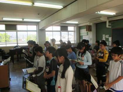音楽の授業では,新しい歌とリコーダーに挑戦中です。高音の難しい所もきれいな声で歌うことができています。