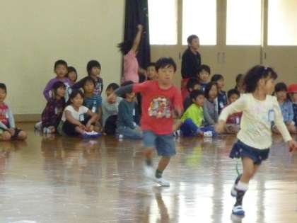 全校合唱の,「音楽のおくりもの」を歌った後,「しっぽとり」をしました。