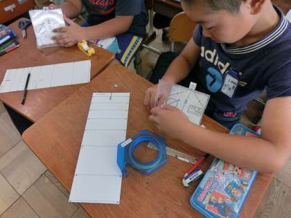 理科では月がどのように動くのかを学習しています。今日は月を観察するための秘密兵器,月観ボードを制作しました。