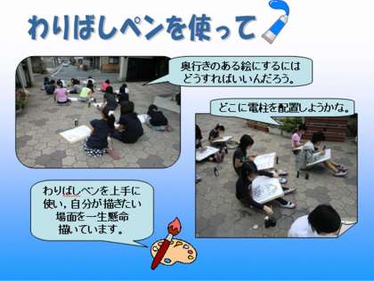 電柱や家の配置(図工では「構図」といいます)を工夫して,