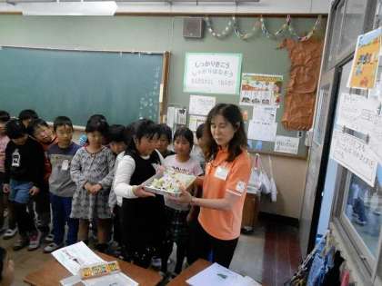 後で1年生の先生にお聞きしたところ,1年生の子ども達も一口食べたらおいしい,甘いととても喜んでいましたよ,と教えていただけました。後日2年生の子ども達に伝えるのが楽しみです。