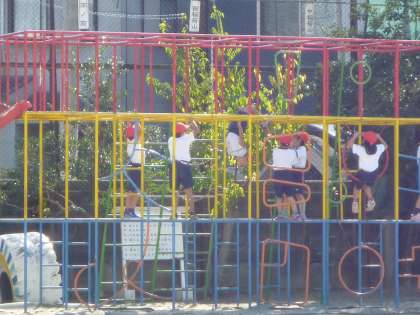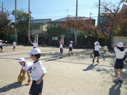体育の学習は,気持ちの良い日差しの中,ボールあそびと遊具遊びをしています。