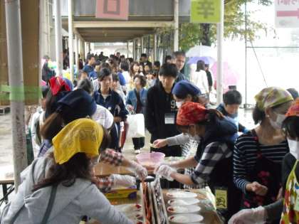 毎年,桂東校区からは,地域やPTA,保護者の皆さんが,フランクフルト・お茶やジュース・みたらし団子・綿菓子(今年は,悪天候のため中止になりました)・カレーライスなどの販売をされています。今年は新たにコーヒーのお店もあり,好評を博していました。桂東が担当したフリーマーケットの会場も大盛況でした。