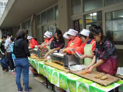 マーケットゾーンの出店の様子です。手慣れた手つきで作業される様子は,さすがでした。桂川中学校のボランティアの子たちもがんばってくれていました。