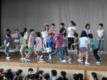 各クラスで台詞に合わせた言い方や動きを工夫しています。