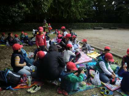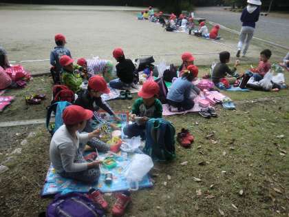 たっぷりと どんぐりを拾って満足をした後は,おいしいお弁当をいただきました。