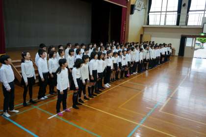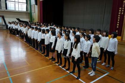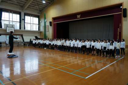 11時から学校の体育館で最後の練習をしました。保護者の皆さんにもぜひ見ていただきたいところですが,会場が京都会館からコンサートホールに変わって,残念ながら座席数の関係で見ていただくことができません。