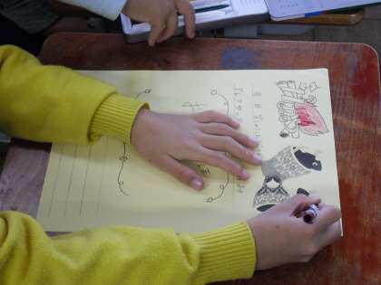 11月のアルバムは,学習発表会の思い出を書きます。発表会が終わったら,写真を貼って,感想を書きます。今日は,練習の後に場面ごとに写真をとりました。カードの準備もしました。