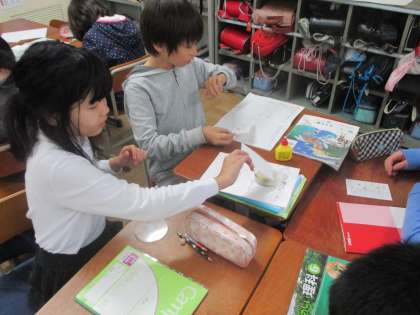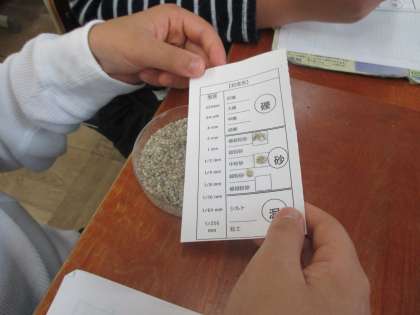 理科で土地のつくりと変化の学習をしています。運動場の土を大きさ別にして標本を作りました。