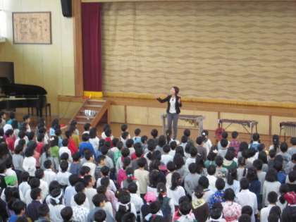 これまで全校合唱の時間に練習してきた「おんがくのおくりもの」をみんなで歌いました。体育館中に桂東小学校の子どもたちの声が響き渡りました。(指揮は石田先生,ピアノ演奏は藤原先生です)