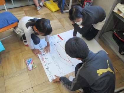 私たちの校区についてグループごとに調べました。調べたことをグループごとにまとめています。