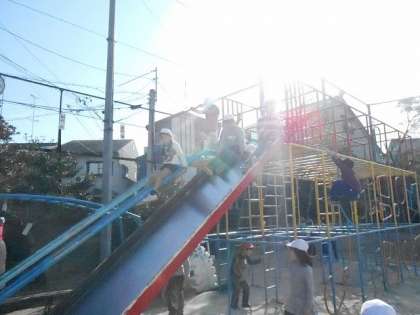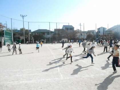 運動場や遊具は寒空をものともしない元気な子ども達でいっぱいでした。